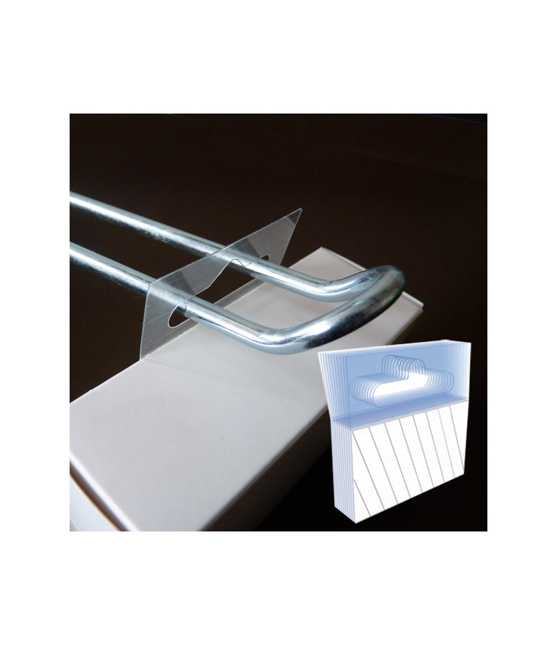 Crochet rigide adhésif flexible trou européen - 50 x 50 mm - préconditionné par 10 - A coller sur vos produits avant mise en rayon - PVC transparent - Lot de 500