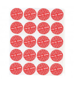 Pastilles promotionnelles - Ø 37.5 mm - Fin de série" - Fond rouge, texte blanc" - Adhésif papier - Lot de 100