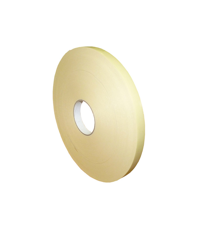 Adhésif double face mousse ECO - HT 12 mm x ép 0.9 mm - Usage intérieur - PLV, cartonnage, plastique... - Double face mousse blanche polyéthylène - Rouleau de 50 m