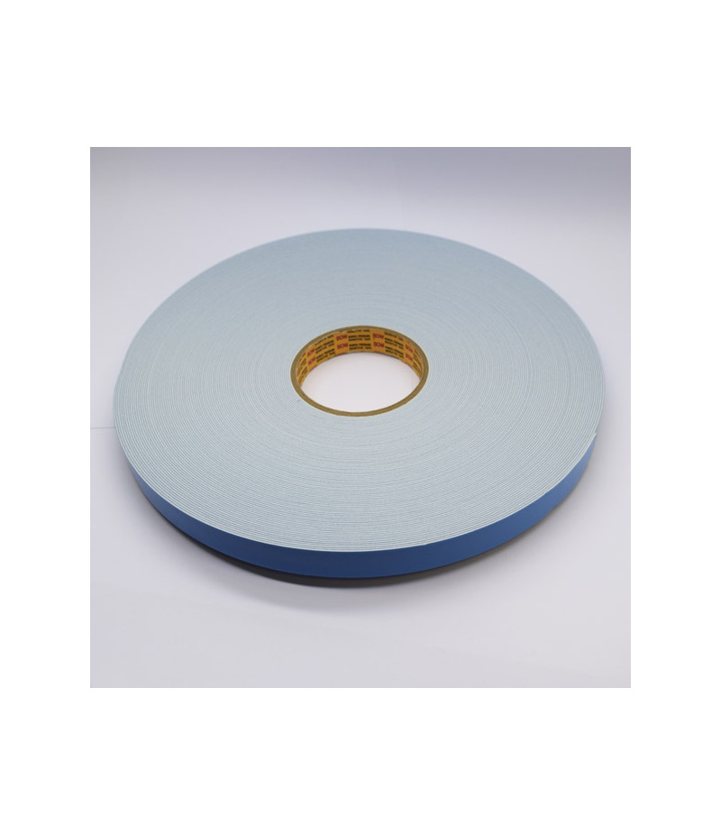 Adhésif double face mousse blanche - Ht 19 mm - Ep. 0.8 mm - 2 faces permanentes - Résistant aux UVB - Mousse polyéthylène/adhésif acrylique - Rouleau de 50 m
