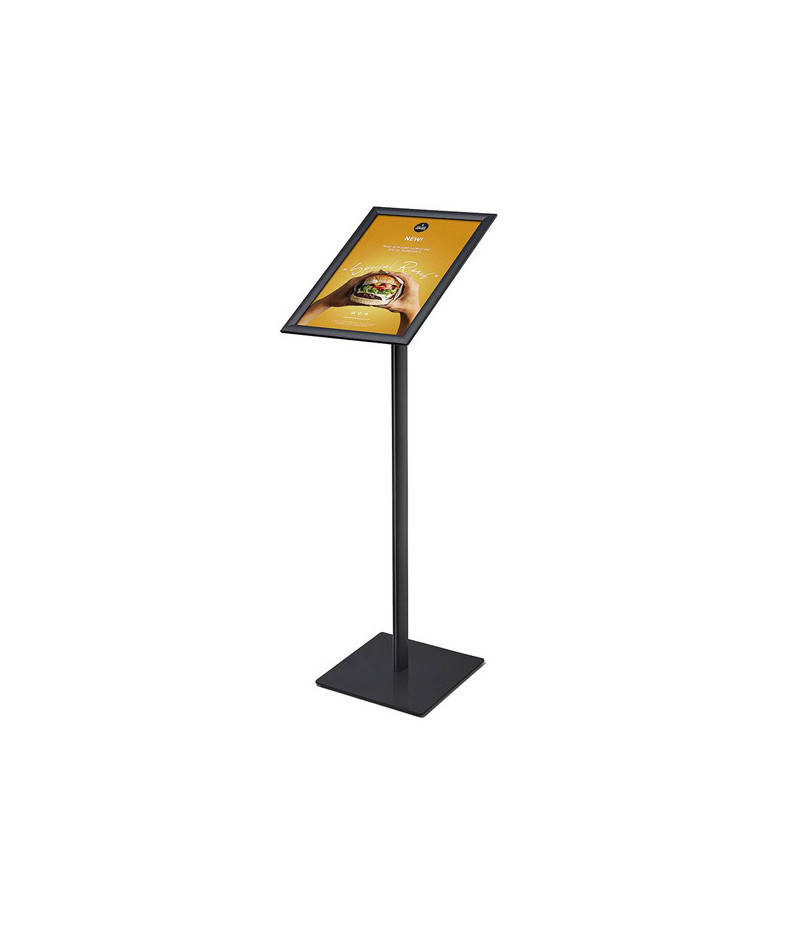Porte-affiche cadre clippant sur pied - Pivotant - A4 - 210 x 297 mm - Hauteur totale 980 mm - Feuille de protection antireflet et anti UV - Aluminium anodisé noir - Pièce