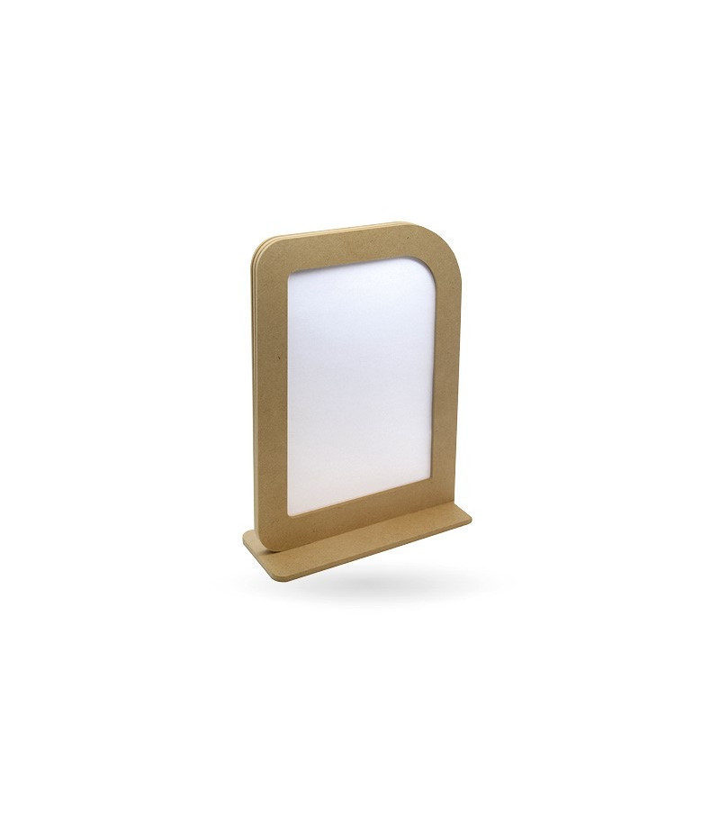 Chevalet bois clippant - Format 249 x 339 x 70- Format utile A4 - Affichage possible R/V - Livré à plat - Cadre médium 3 mm - Socle médium 5 mm - Pièce